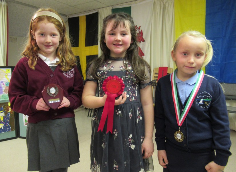 Llefaru Bl. 1 a 2 – 3. Greta Marged Wyn, 1. Alaw Fflur Evans a 3. Beca Eluned DaviesUnawd Bl. 3 a 4 – 2. Alis Gibbard, 1. Gwenllian Francis Jones a 3. Idris GwynLlefaru Bl. 3 a 4 – 2. Alis Gibbard, 1. Alys Evans a 3. Isabel Hughes Unawd Bl. 5 a 6 a Llefaru Bl. 5 a 6 – 1. Ioan Jones a 2. Beca Morris