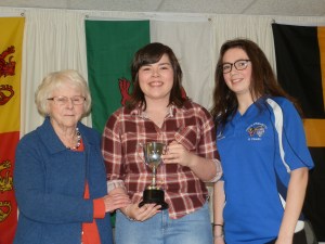 C.Ff.I. San Ishmael, buddugol ar yr eitem, yn derbyn y cwpan wrth Eirwen Jones